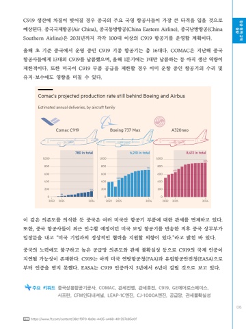 06C919 %uc0dd%uc0b0%uc5d0 %ucc28%uc9c8%uc774 %ube5a%uc5b4%uc9c8 %uacbd%uc6b0 %uc911%uad6d%uc758 %uc8fc%uc694 %uad6d%uc601 %ud56d%uacf5%uc0ac%ub4e4%uc774 %uac00%uc7a5 %ud070 %ud0c0%uaca9%uc744 %uc785%uc744 %uac83%uc73c%ub85c %uc608%uc0c1%ub41c%ub2e4. %uc911%uad6d%uad6d%uc81c%ud56d%uacf5(Air China), %uc911%uad6d%ub3d9%ubc29%ud56d%uacf5(China Eastern Airline), %uc911%uad6d%ub0a8%ubc29%ud56d%uacf5(China Southern Airline)%uc740 2031%ub144%uae4c%uc9c0 %uac01%uac01 100%ub300 %uc774%uc0c1%uc758 C919 %ud56d%uacf5%uae30%ub97c %uc6b4%uc601%ud560 %uacc4%ud68d%uc774%ub2e4.%uc62c%ud574 %ucd08 %uae30%uc900 %uc911%uad6d%uc5d0%uc11c %uc6b4%uc601 %uc911%uc778 C919 %uae30%uc885 %ud56d%uacf5%uae30%ub294 %ucd1d 16%ub300%ub2e4. COMAC%uc740 %uc9c0%ub09c%ud574 %uc911%uad6d %ud56d%uacf5%uc0ac%ub4e4%uc5d0%uac8c 13%ub300%uc758 C919%ub97c %ub0a9%ud488%ud588%uc73c%uba70, %uc62c%ud574 1%ubd84%uae30%uc5d0%ub294 1%ub300%ub9cc %ub0a9%ud488%ud558%ub294 %ub4f1 %uc544%uc9c1 %uc0dd%uc0b0 %uc5ed%ub7c9%uc774 %uc81c%ud55c%uc801%uc774%ub2e4. %ub610%ud55c %ubbf8%uad6d%uc774 C919 %ubd80%ud488 %uacf5%uae09%uc744 %uc81c%ud55c%ud560 %uacbd%uc6b0 %uc774%ubbf8 %uc6b4%ud56d %uc911%uc778 %ud56d%uacf5%uae30%uc758 %uc218%ub9ac %ubc0f %uc720%uc9c0%u00b7%ubcf4%uc218%uc5d0%ub3c4 %uc601%ud5a5%uc744 %ubbf8%uce60 %uc218 %uc788%ub2e4.%uc774 %uac19%uc740 %uc758%uc874%ub3c4%ub97c %uc758%uc2dd%ud55c %ub4ef %uc911%uad6d%uc740 %uc5ec%ub7ec %ubbf8%uad6d%uc0b0 %ud56d%uacf5%uae30 %ubd80%ud488%uc5d0 %ub300%ud55c %uad00%uc138%ub97c %uba74%uc81c%ud558%uace0 %uc788%ub2e4. %ub610%ud55c, %uc911%uad6d %ud56d%uacf5%uc0ac%ub4e4%uc774 %ucd5c%uadfc %uc778%uc218%ud560 %uc608%uc815%uc774%ub358 %ubbf8%uad6d %ubcf4%uc789 %ud56d%uacf5%uae30%ub97c %ubc18%uc1a1%ud55c %uc9c1%ud6c4 %uc911%uad6d %uc0c1%ubb34%ubd80%uac00 %uc785%uc7a5%ubb38%uc744 %ub0b4%uace0 %u201c%ubbf8%uad6d %uae30%uc5c5%uacfc%uc758 %uc815%uc0c1%uc801%uc778 %ud611%ub825%uc744 %uc9c0%uc6d0%ud560 %uc758%ud5a5%uc774 %uc788%ub2e4.%u201d%ub77c%uace0 %ubc1d%ud78c %ubc14 %uc788%ub2e4.%uc911%uad6d%uc758 %ub178%ub825%uc5d0%ub3c4 %ubd88%uad6c%ud558%uace0 %ub192%uc740 %uacf5%uae09%ub9dd %uc758%uc874%ub3c4%uc640 %uad00%uc138 %ubd88%ud655%uc2e4%uc131 %ub4f1%uc73c%ub85c C919%uc758 %uad6d%uc81c %uc778%uc99d%uc774 %uc9c0%uc5f0%ub420 %uac00%ub2a5%uc131%uc774 %uc874%uc7ac%ud55c%ub2e4. C919%ub294 %uc544%uc9c1 %ubbf8%uad6d %uc5f0%ubc29%ud56d%uacf5%uccad(FAA)%uacfc %uc720%ub7fd%ud56d%uacf5%uc548%uc804%uccad(EASA)%uc73c%ub85c%ubd80%ud130 %uc778%uc99d%uc744 %ubc1b%uc9c0 %ubabb%ud588%ub2e4. EASA%ub294 C919 %uc778%uc99d%uae4c%uc9c0 3%ub144%uc5d0%uc11c 6%ub144%uc774 %uac78%ub9b4 %uac83%uc73c%ub85c %ubcf4%uace0 %uc788%ub2e4.%uc8fc%uc694 %ud0a4%uc6cc%ub4dc %uc911%uad6d%uc0c1%uc6a9%ud56d%uacf5%uae30%uacf5%uc0ac, COMAC, %uad00%uc138%uc804%uc7c1, %uad00%uc138%ud734%uc804, C919, GE%uc5d0%uc5b4%ub85c%uc2a4%ud398%uc774%uc2a4, %uc0ac%ud504%ub780, CFM%uc778%ud130%ub0b4%uc154%ub110, LEAP-1C%uc5d4%uc9c4, CJ-1000A%uc5d4%uc9c4, %uacf5%uae09%ub9dd, %uad00%uc138%ubd88%ud655%uc2e4%uc131 %ucd9c%ucc98 https://www.ft.com/content/38c1f970-8a9e-4435-a468-401597e85e0f