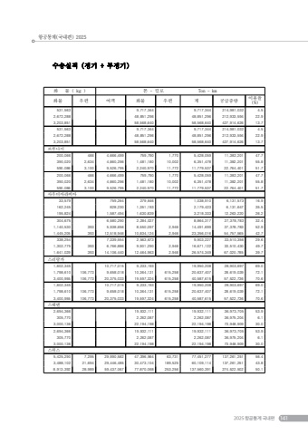 %ud654 %ubb3c ( kg ) %ud1a4 - %ud0ac%ub85c Ton - km%ud654%ubb3c %uc6b0%ud3b8 %uc5ec%uac1d %ud654%ubb3c %uc6b0%ud3b8 %uacc4 %uacf5%uae09%uc911%ub7c9 %uc774%uc6a9%uc728(%)%uc218%uc1a1%uc2e4%uc801 (%uc815%uae30 + %ubd80%uc815%uae30)531,563 9,717,344 9,717,344 214,981,032 4.52,672,288 48,851,296 48,851,296 212,933,594 22.93,203,851 58,568,640 58,568,640 427,914,626 13.7531,563 9,717,344 9,717,344 214,981,032 4.52,672,288 48,851,296 48,851,296 212,933,594 22.93,203,851 58,568,640 58,568,640 427,914,626 13.7%ube0c%ub8e8%ub098%uc774200,066 466 4,666,499 759,790 1,770 5,428,059 11,382,201 47.7390,020 2,634 4,860,296 1,481,180 10,002 6,351,478 11,382,201 55.8590,086 3,100 9,526,795 2,240,970 11,772 11,779,537 22,764,401 51.7200,066 466 4,666,499 759,790 1,770 5,428,059 11,382,201 47.7390,020 2,634 4,860,296 1,481,180 10,002 6,351,478 11,382,201 55.8590,086 3,100 9,526,795 2,240,970 11,772 11,779,537 22,764,401 51.7%uc0ac%uc6b0%ub514%uc544%ub77c%ube44%uc54433,579 759,264 279,646 1,038,910 6,131,573 16.9162,245 828,230 1,351,193 2,179,423 6,131,647 35.5195,824 1,587,494 1,630,839 3,218,333 12,263,220 26.2304,675 6,580,290 2,284,027 8,864,317 27,378,783 32.41,140,530 393 5,938,656 8,550,097 2,946 14,491,699 27,378,783 52.91,445,205 393 12,518,946 10,834,124 2,946 23,356,016 54,757,565 42.7338,254 7,339,554 2,563,673 9,903,227 33,510,356 29.61,302,775 393 6,766,886 9,901,290 2,946 16,671,122 33,510,430 49.71,641,029 393 14,106,440 12,464,963 2,946 26,574,349 67,020,785 39.7%uc2a4%ub9ac%ub791%uce741,602,345 10,717,015 9,233,193 19,950,208 28,903,697 69.01,798,610 106,773 9,658,018 10,364,131 615,258 20,637,407 28,619,039 72.13,400,955 106,773 20,375,033 19,597,324 615,258 40,587,615 57,522,736 70.61,602,345 10,717,015 9,233,193 19,950,208 28,903,697 69.01,798,610 106,773 9,658,018 10,364,131 615,258 20,637,407 28,619,039 72.13,400,955 106,773 20,375,033 19,597,324 615,258 40,587,615 57,522,736 70.6%uc2a4%uc6e8%ub3742,694,366 19,932,111 19,932,111 36,973,705 53.9305,770 2,262,087 2,262,087 36,975,204 6.13,000,136 22,194,198 22,194,198 73,948,909 30.02,694,366 19,932,111 19,932,111 36,973,705 53.9305,770 2,262,087 2,262,087 36,975,204 6.13,000,136 22,194,198 22,194,198 73,948,909 30.0%uc2a4%uc704%uc2a45,425,290 7,295 29,990,582 47,396,964 63,731 77,451,277 137,261,251 56.43,488,102 21,694 29,446,485 30,473,104 189,525 60,109,114 137,261,251 43.88,913,392 28,989 59,437,067 77,870,068 253,256 137,560,391 274,522,502 50.1%ud56d%uacf5%ud1b5%uacc4(%uad6d%ub0b4%ud3b8) 2025%u257b 92 %u257b2025 %ud56d%uacf5%ud1b5%uacc4 %uad6d%ub0b4%ud3b8 141
